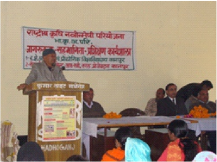 The project covered 32 districts in Uttar Pradesh and society served as a associated NGO for mobilization, training and implementation of programmes in the project. Organized training programmes of farmers, KisanMitras, farm women in the transfer of different technologies selected for the project. Arranged field days, demonstrations and exposure visits. Facilitated better coordination among district administration, bankers, IIM, AMC and DASP officials. Created and managed commodity groups like seed production, sheep and goat and dairy groups, bee- keeping, bio-compost and vermiculture groups. Facilitated group formation, group nurturing etc.